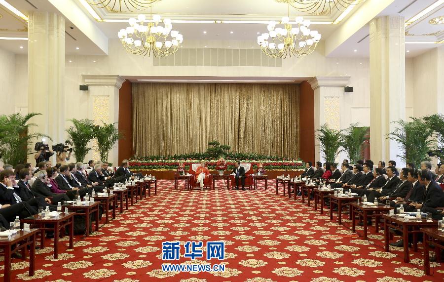 2012年8月31日,中國國務(wù)院總理溫家寶在天津同德國總理默克爾一起與兩國企業(yè)家座談。